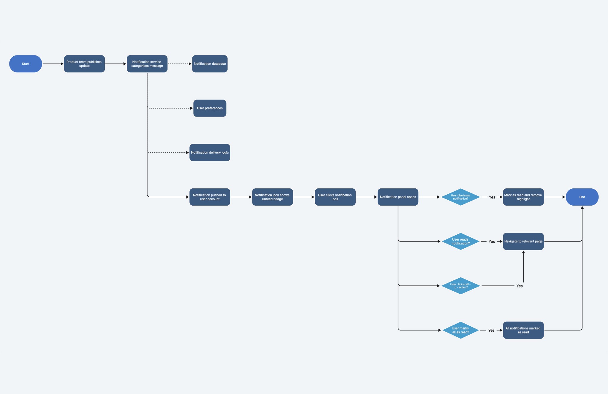 Notification panel (chosen): A persistent panel accessible from anywhere in the Marketplace. Users could view updates on their own terms.